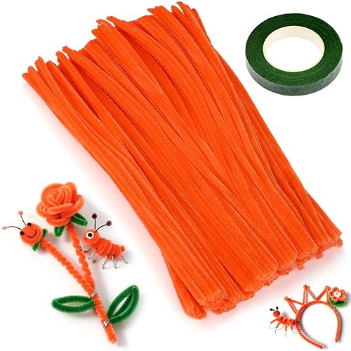 XRXYMQ Lot de 200 cure-pipes orange - 30 cm - Décoration de tuyau - Fil chenille pour d'autres formes - Décoration artisanale - Pour projets créatifs