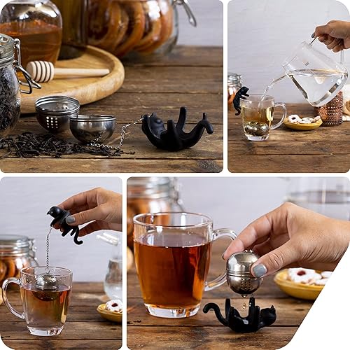 Cattea Infuseur à thé 2 en 1 / Soucoupe en Silicone | Infuseur à thé en métal de qualité Alimentaire | Gadgets de Cuisine Cool | Infuseur à thé pour thé en Vrac | par Peleg Design