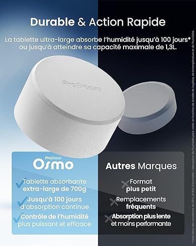 Pro Breeze Osmo Deshumidificateur d Air, Absorbeur d'Humidité – Silencieux & Réutilisable contre l’Humidité – Avec Recharge – Sans Électricité pour Maison Chambre Voiture Salle de Bain