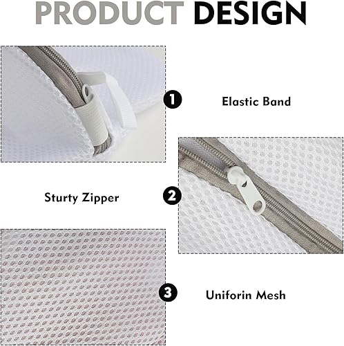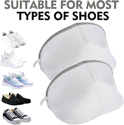 Lot de 2 Sacs de Lavage pour Chaussures en Machine à Laver, Filets de Protection Réutilisables avec Fermeture Éclair, Maille Double Couche, Taille 24x24x40 cm, Idéal pour Chaussures, Vêtements