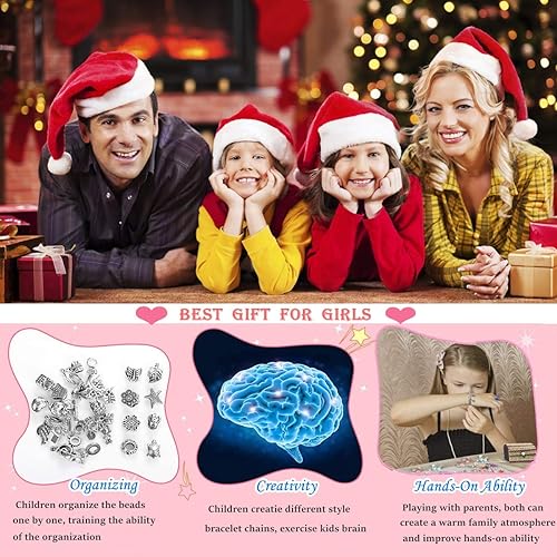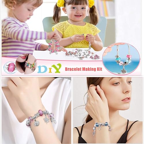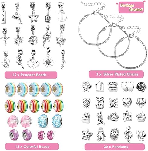 56pcs Kit Bijoux de Bracelets à Breloques avec 3 Pièces Chaînes Serpents Plaquées Argent DIY Bracelet Creation Enfant - Idee Cadeau Ado Fille