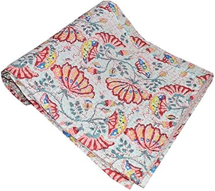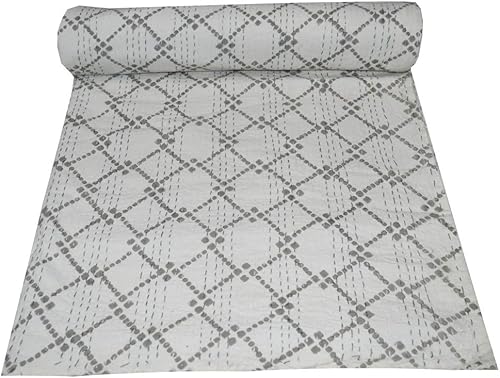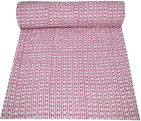 YUVANCRAFTS Couvre-lit indien fait main en coton Kantha traditionnel imprimé à pois pour lit simple (jaune)