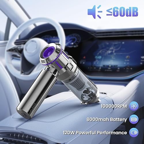 ZUWOHL Aspirateur Voiture sans Fil 3-en-1 Puissant (21KPA) - Mini Aspirateur avec Moteur Brushless, 3 Niveaux de Puissance, Portable pour Nettoyage Auto/Intérieur - Compact & Léger