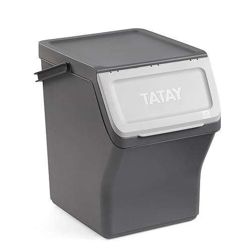 Tatay Poubelle modulaire et empilable. Capacité de 20L. en polypropylène. Couvercle coloré avec Ouverture à charnière. Large Ouverture Frontale. Poignée de Transport. Gris Anthracite. 36x35x27cm.