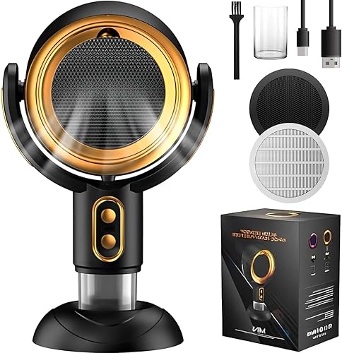 Puffhide Ventilateur purificateur d'air rechargeable pour ventilateur de fumée, 3 000 mAh, ventilateur portable pour éliminer la fumée et les odeurs (prise dorée)