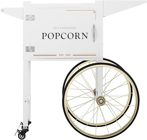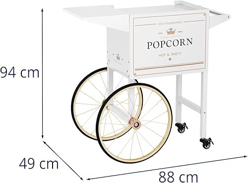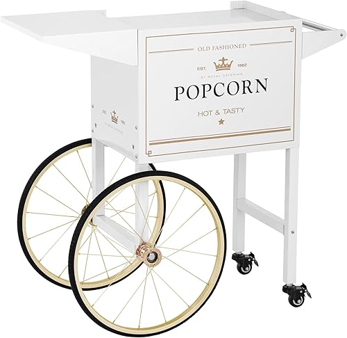 Royal Catering Chariot pour Machine à Popcorn Professionnelle Coloris Blanc & Doré, Tôle d'acier Peinte, 4 Roues, 2 Freins, Compartiment De Rangement Appareil Professionnel Cinéma