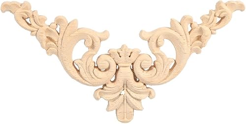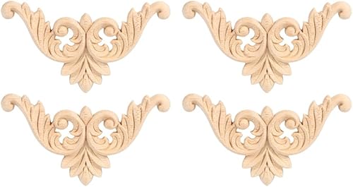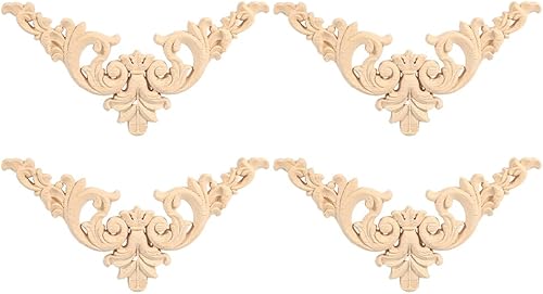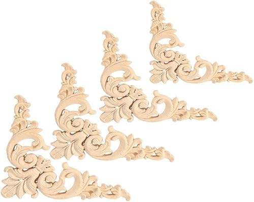 Fydun Applique de meubles 4PCS en bois sculpté en bois de coin Onlay Applique forme de fleur de décoration non peinte(12 * 12)