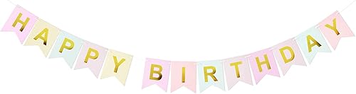 Happy Birthday Banderole Multicolore Bannière Joyeux Anniversaire Pastel Design de la Personnalité Décoration pour Table Fête Party Anniversaire Cérémoniee