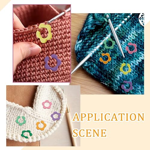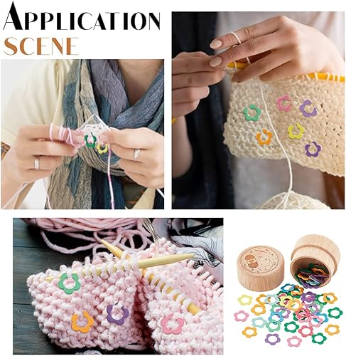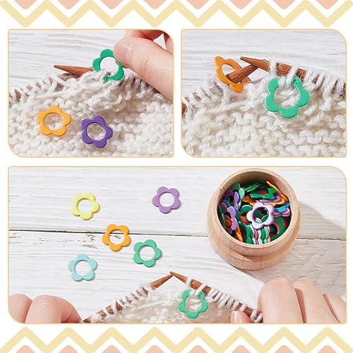nbeads 60 Pcs Alliage Fleur Forme Tricot Point, 9.5mm Marqueurs Point D'Anneau Crochet Marqueur Point Charmes Tricot Verrouillage Coloré avec Boîte de Rangement en Bois Kit Bricolage pour Tricoter