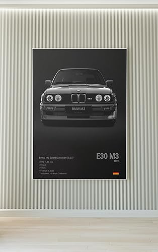 Poster BMW M3 E30 au format 40x60 cm sans cadre | impression sur toile haute qualité | décoration murale moderne idéale pour chambre, bureau ou garage | parfait pour passionnés d'automobiles