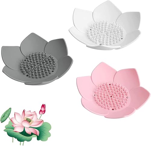 Aatpuss 3 Pièces Porte-Savon Lotus, Porte-Savon en Silicone Lotus, Boîte à Savon Lotus Confort, pour Salle de Bain, Cuisine, Salle de Douche, Buanderie ou Vestiaire(Trois Couleurs)