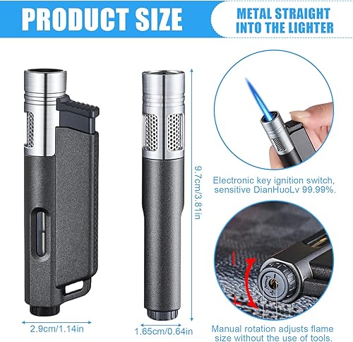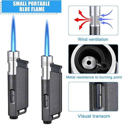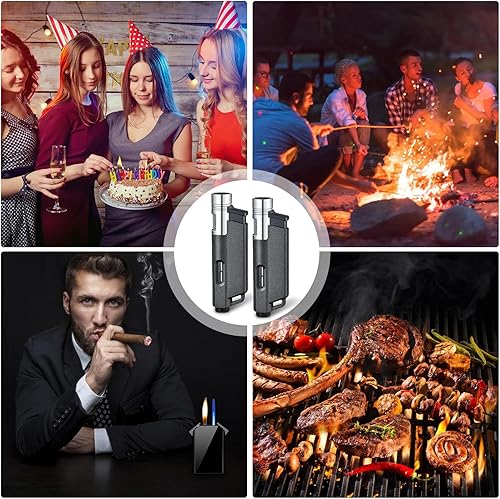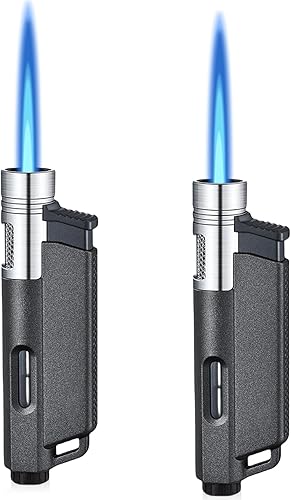 Lot de 2 briquets : briquet tempête, jet flamme, briquet butane rechargeable, briquet tempête, flamme constante, flamme réglable, forme alternative pour hommes (sans gaz)