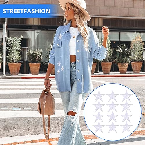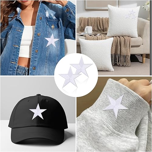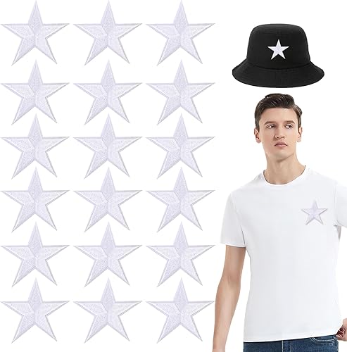 Lot de 18 écussons thermocollants - Étoiles blanches - Étoiles brodées - Thermocollants - Pour travaux manuels, sacs à dos, robes, chapeaux, manteaux et autres vêtements