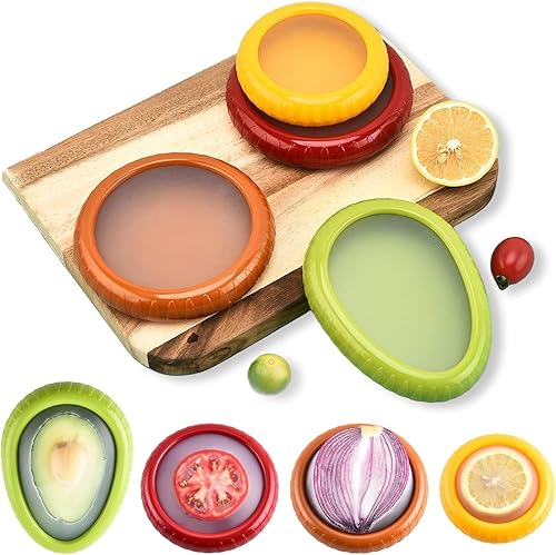 Conteneurs de Stockage de Fruits,4 PCS/Set Boîtes de Rangement Réutilisables en Silicone,Boîte de'conservation Alimentaire pour Oignons,Tomate,Citron,Avocat,Légumes pour Garder les Aliments Frais