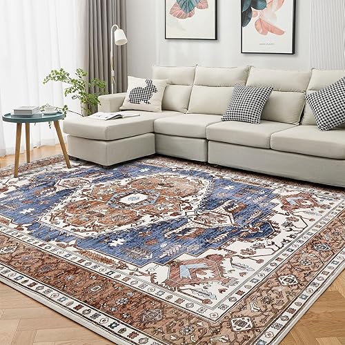 WONGS BEDDING Tapis bohème, à poils courts, lavable, doux, antidérapant, design vintage, rouge, 140 x 200 cm, YS01EA010105AS-A
