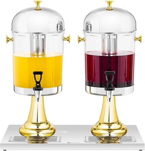 Royal Catering Distributeur De Jus De Fruit Fruits Boisson Froide Fontaine À Cocktail Punch RCSD-2G (Volume 2 x 8 l, Récipients Ø 22 cm, Dispositif De Refroidissement Intégré, Plastique & Inox)