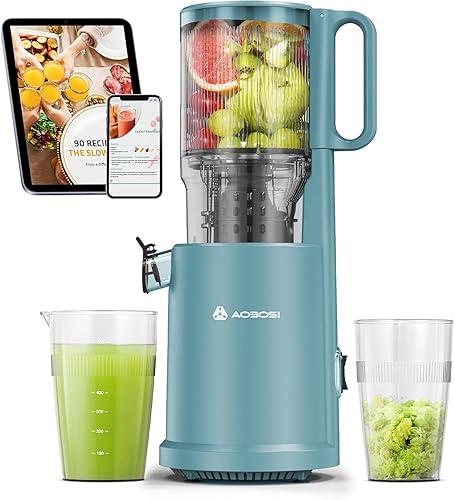 Aobosi Extracteur de Jus, Extracteur de Jus de Fruits et Légumes avec moteur silencieux & tasse à jus & brosse de nettoyage, Sans BPA (150 Watts/Bleu)