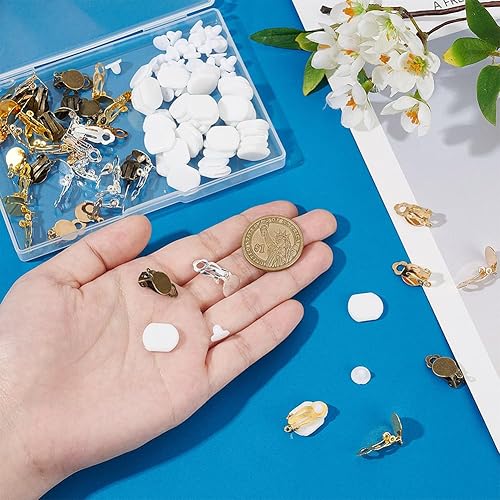 GOMAKERER 120pcs convertisseur de Boucles D'Oreilles à Clipser, 6 Styles Boucles D'Oreilles Non Percées Fer Boucles D'Oreilles à Plateau Rond à avec Coussinets en Silicone pour Fabrication de Bijoux