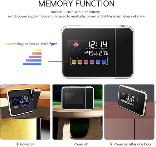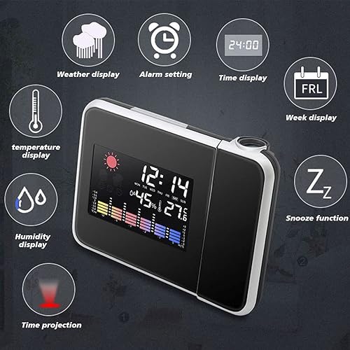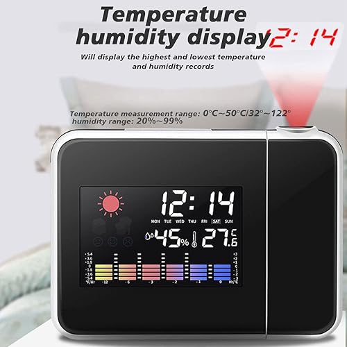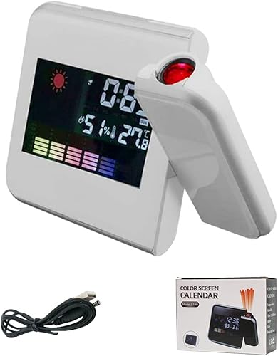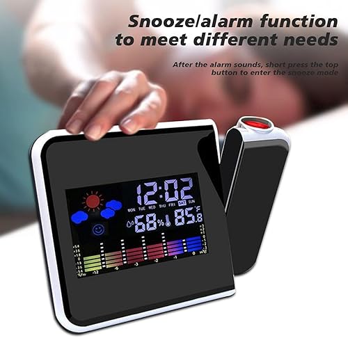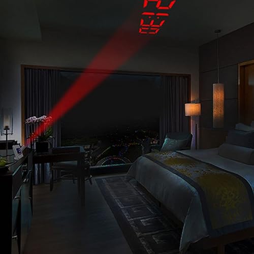 Wanjorlay LED Projection NuméRique RéVeil TempéRature ThermomèTre Bureau Heure Affichage de la Date Projecteur Calendrier Table LED Horloge C