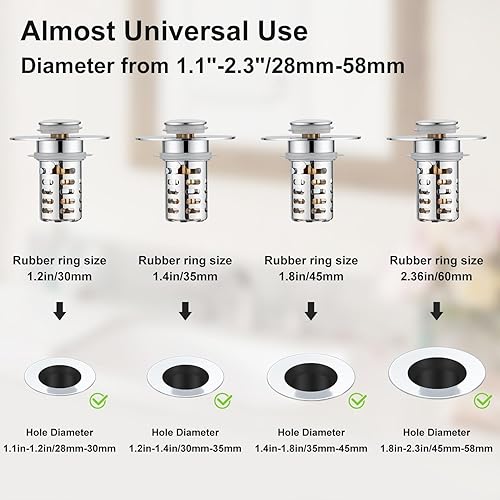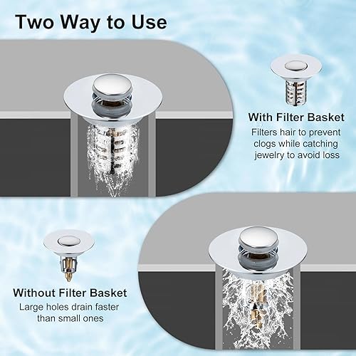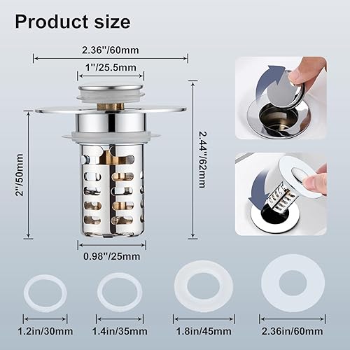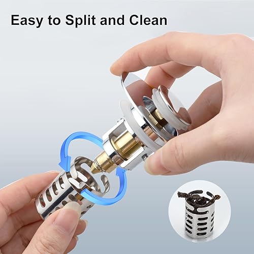 Bonde de lavabo pop-up 3 en 1 avec tamis et panier filtrant amovible en acier inoxydable - Bouchon de lavabo pour lavabo de 28 à 58 mm - Noyau sphérique en laiton chromé