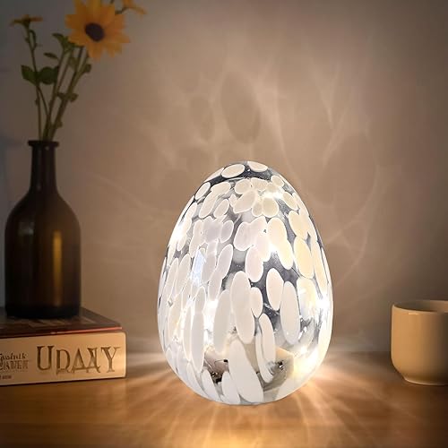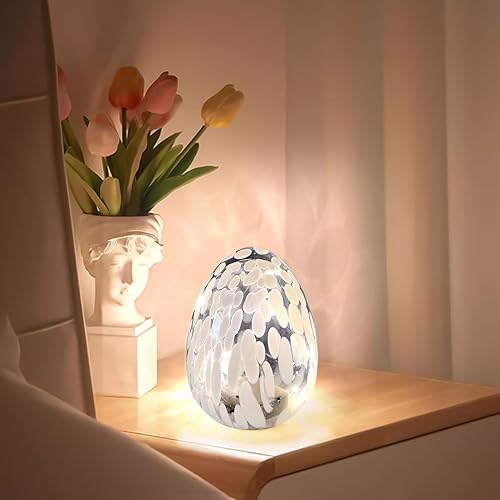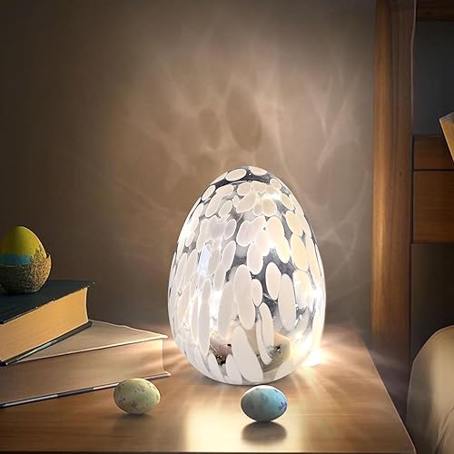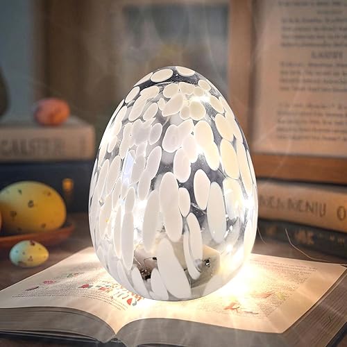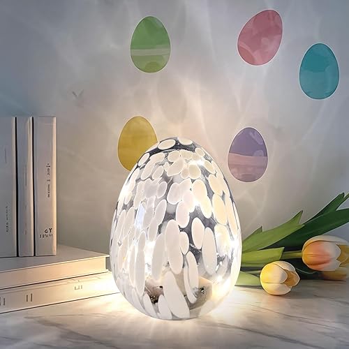 Œufs de Pâques lumineux à LED - Œufs de Pâques avec lumière LED en verre - Décoration de printemps - Lampe de bureau - Décoration de Pâques - Fonctionne avec piles - Pour décoration de table