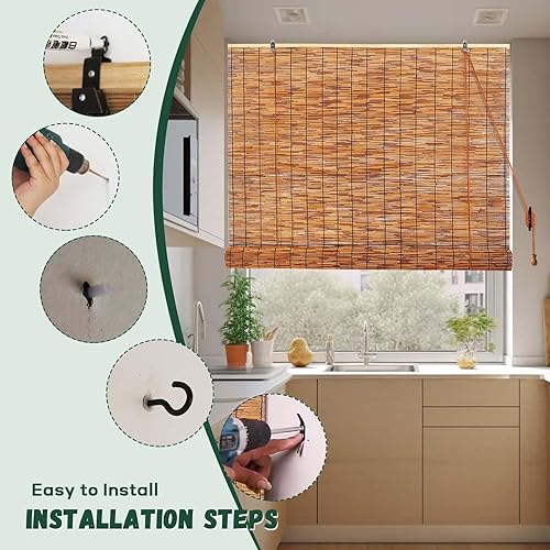 Store Enrouleur Bambou Exterieur Terrasse Store Roseau Naturel Imperméables Intimité 70% D'occultation 50 55 60 70 80 90 100 110 120 130 140 150 160cm pour Jardin Véranda Anti-UV Facile à Installer
