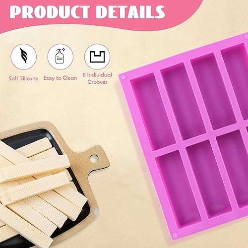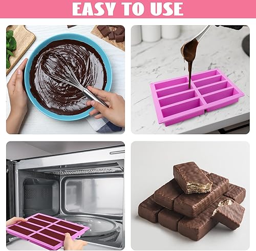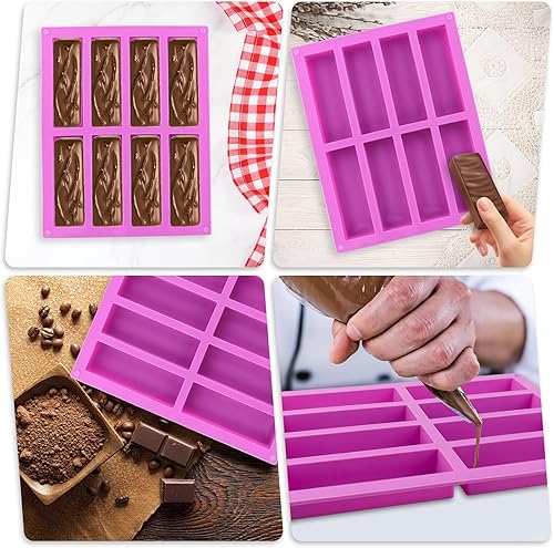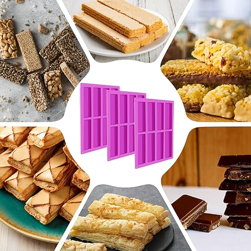 3 Pièces Moule Financier Silicone de 8 Cavidades, Moule Barre Cereales Maison, Moule Silicone Rectangulaire 8 Cavités Anti-Adhésif Moule Rectangulaire pour Barre de Chocolat, Barre Granola, Biscuits