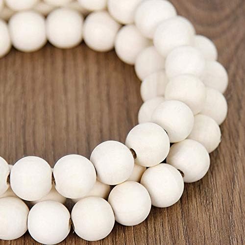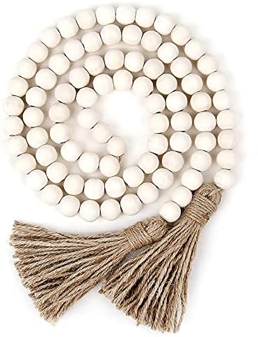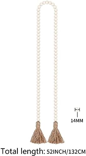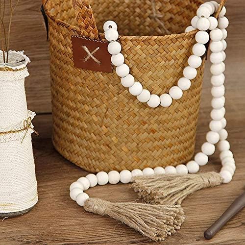 Guirlande de perles en bois avec pompons, perles rustiques de style rustique et bohème à suspendre au mur, couleur bois