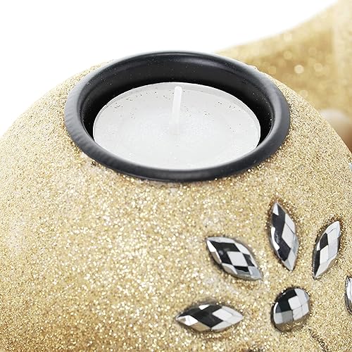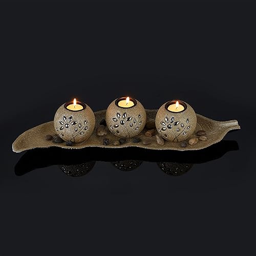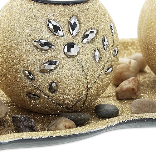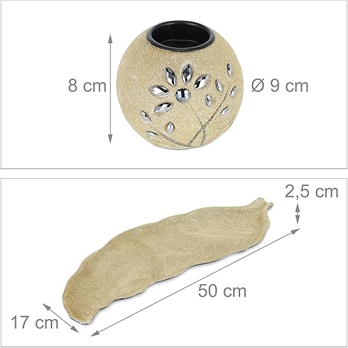 Relaxdays Porte-Bougies en lot avec Plateau et Pierres, 50 cm de Longueur, décoration Table Salon, bougeoir, doré
