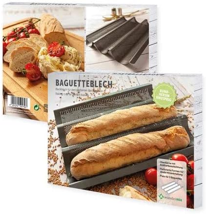Wundermix - Plaque à baguettes avec revêtement antiadhésif • Moule à baguettes pour 3 baguettes • Plaque pour baguettes de pain • Moule à pain baguette