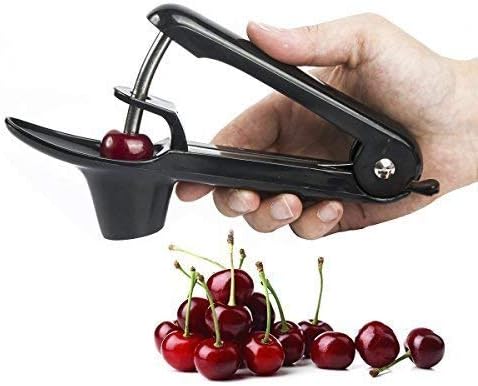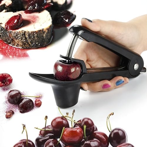 Cherry Pitter or Stoner, Olive Pitter Remover, Cherry Core or Seed Remover With Good Grips Handle & Food Grade Silicone Cup (Black)