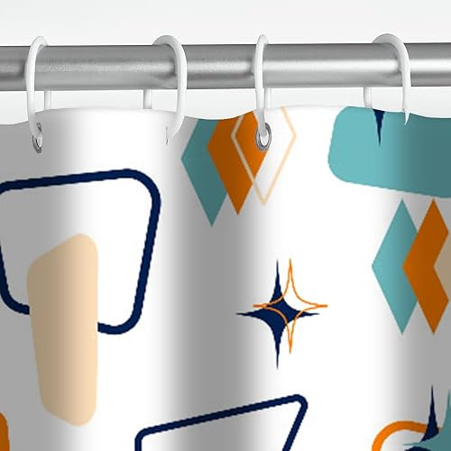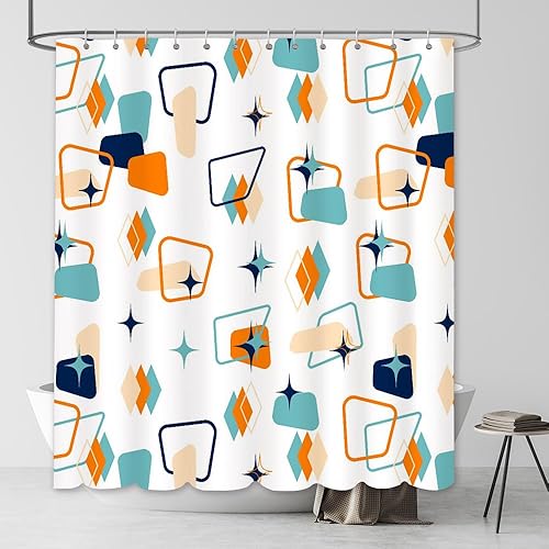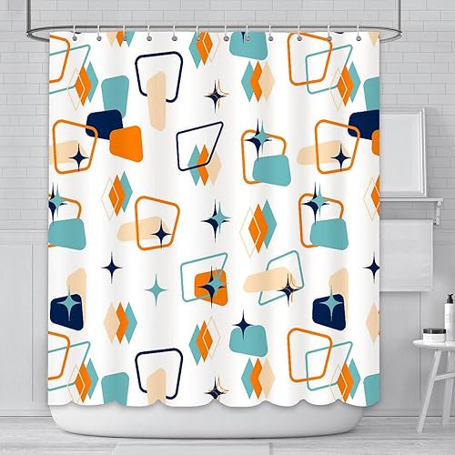 AIBIIN Rideau de douche 180 x 180 cm rétro abstrait géométrique espace classique années 1950 1960 motif emblématique moderne décoration d'intérieur durable en polyester imperméable avec 12 crochets