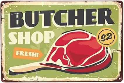 Geroclonup Plaque de boucherie vintage en métal - Décoration murale pour restaurant, bar, pub, club, cave, homme - 20 x 30 cm