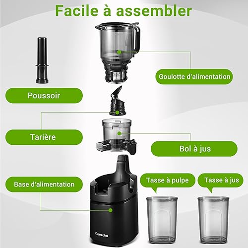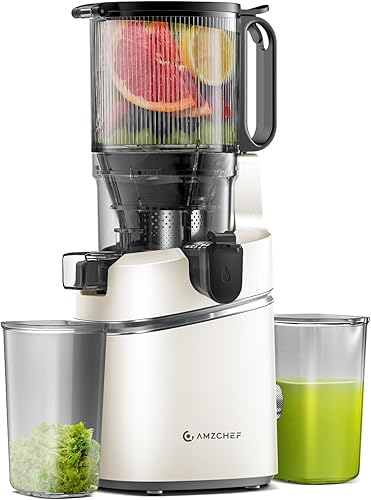AMZCHEF Extracteur de jus automatique Vos mains libres, Ouverture de 135 mm et capacité de 1.8L Extracteur de jus de fruits et légumes entiers, Extracteur jus lent de 250W avec triple filtre - Gris
