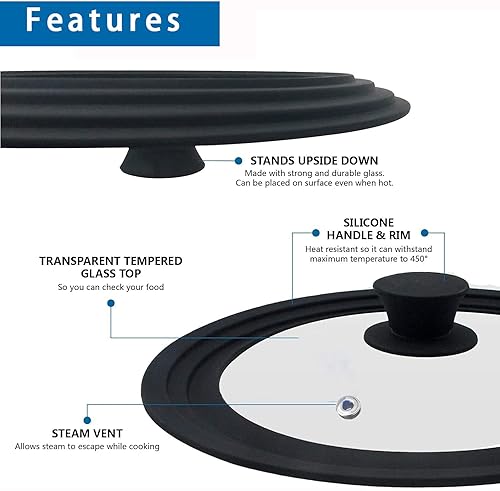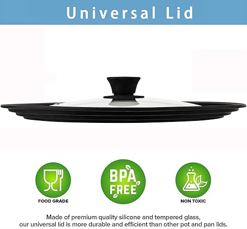 Couvercle Universel, Couvercle de Casserole avec Rebord en Silicone Résistant à la Chaleur, Convient à Tous Les 24cm, 26cm, 28cm Ustensiles de Cuisine, Casseroles, Poêles et Poêles de