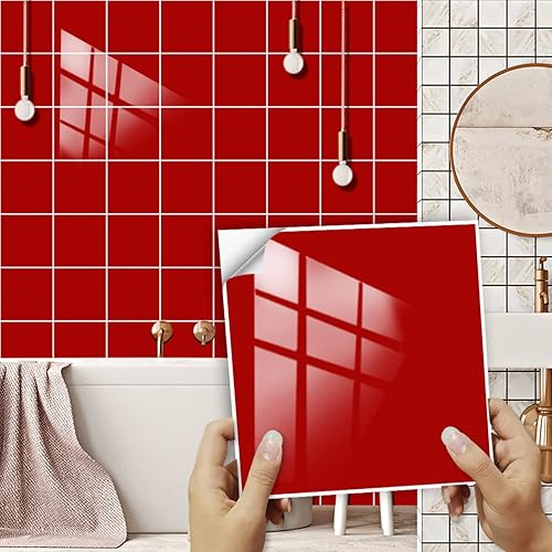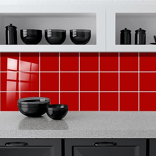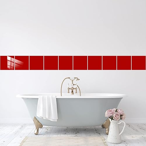 Credence Adhesive pour Cuisine 10X10 Rouge Stickers Cuisine Stickers Muraux Cuisine Carrelage Adhesif Mural Stickers Salle de Bain Dalle Pvc Adhesive Murale (10 Pièces)