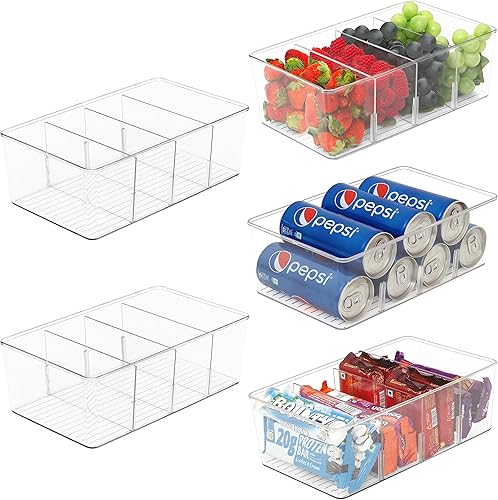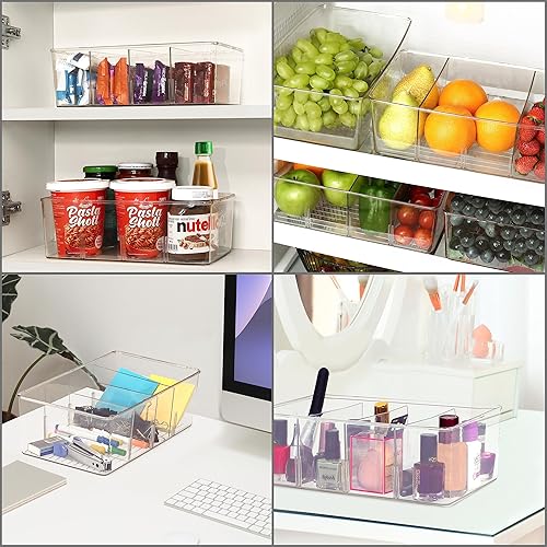 Winter Shore Bac Alimentaire Plastique [Lot de 5] - Boite Rangement Frigo pour Snacks & Boissons - Rangement Boite de Conserve - Boite Frigo avec 4 Compartiments Séparateurs Amovibles