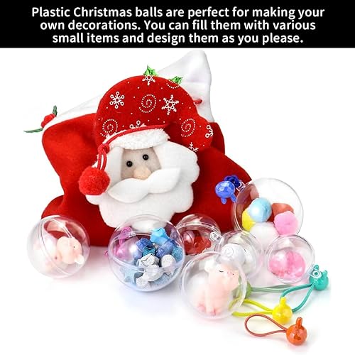 Aililong 30 comprimés Boules en Plastique, Boules de Noël Transparentes en Plastique 3 Tailles (4/5 / 6cm), Boules en Plastique de Bricolage