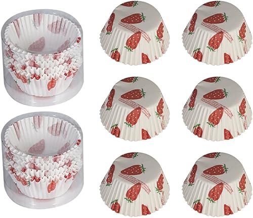 FSSTUD Lot de 200 moules à muffins en papier à motif de fraises pour petits fruits, fête de mariage, emballages de cupcakes mignons pour fête prénuptiale