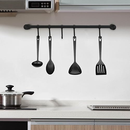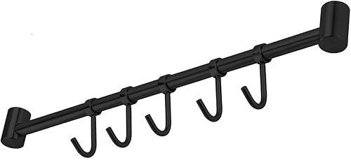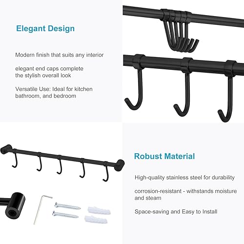 Intirilife Barre à suspendre pour la cuisine en acier inoxydable avec 5 crochets mobiles à percer - 35.8 x 3.4 x 2.2 cm - Barre à crochets pour la cuisine Barre Support mural