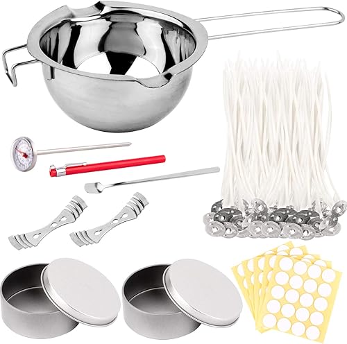 WXJ13 Kit de fabrication de bougies avec 100 mèches de bougies, autocollants, pot verseur, porte-mèches à 3 trous, boîte métallique et thermomètre