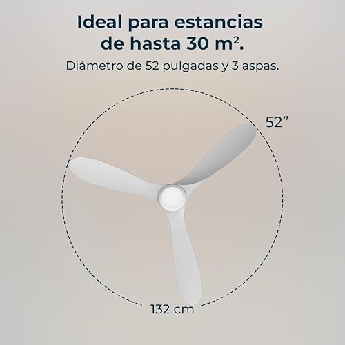 Cecotec Ventilateur de Plafond avec Lumière LED Energysilence Aero 5400. 40W, Moteur DC, Diamètre 132 cm, 3 Pales, Minuteur, 6 Vitesses, Télécommande, Fonction Été/Hiver, Design Silencieux