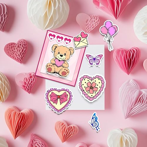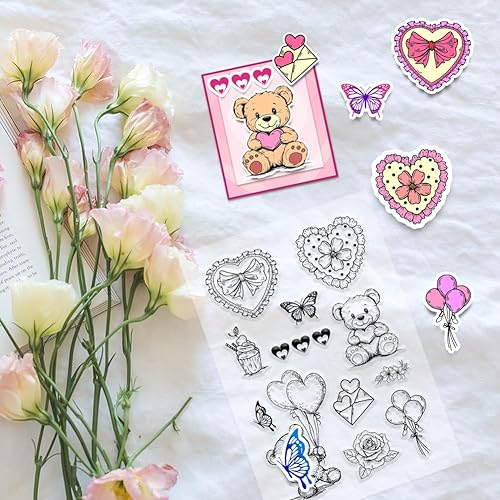 PH PandaHall Tampon Transparent Cœur Fleur Tampon en Silicone Sweet Bear Tampon en Caoutchouc Transparent Joli Ballon pour Mariage Été la Fabrication de Cartes Scrapbooking Cadeau Album Photo