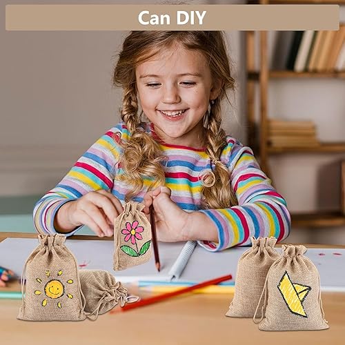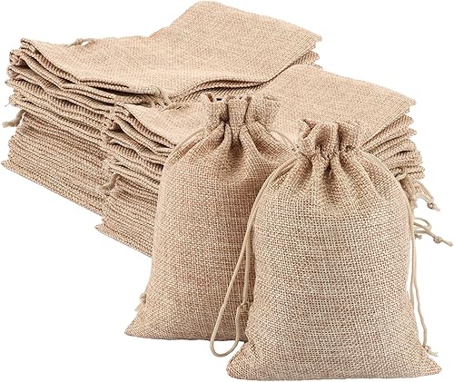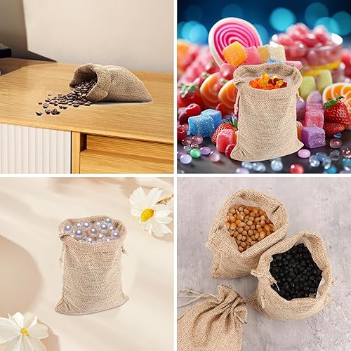 FWEEK Lot de 80 petits sacs en toile de jute - 8 x 10 cm - Petit sac en coton avec cordon de serrage - Sacs en coton - Pour mariage, bricolage et fête