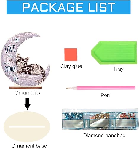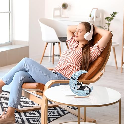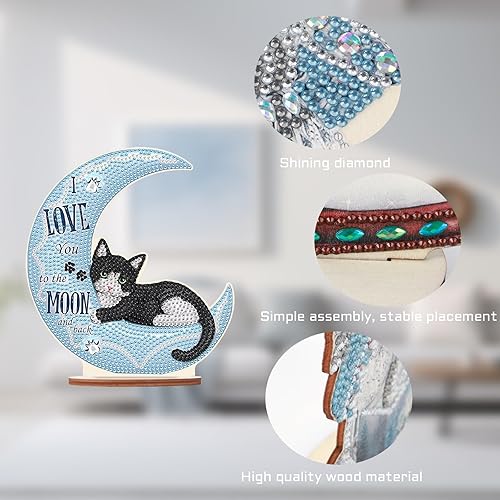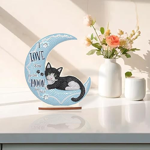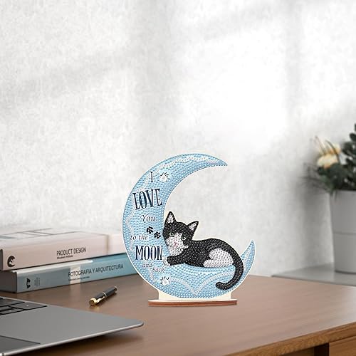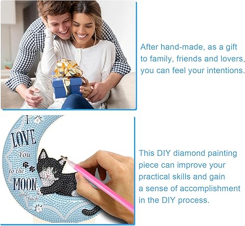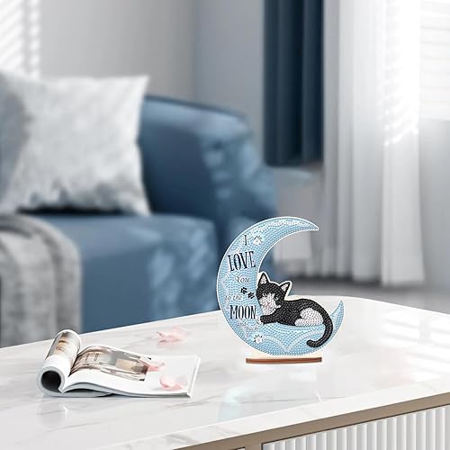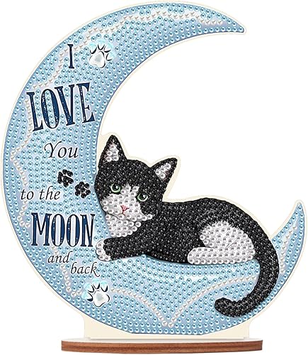 DCIDBEI DIY Objets de Décoration en Peinture Diamant, Diamond Painting Dessin Animé, Tableau Diamant Statues Décoratives, Meilleur Cadeau Pour Amis/Famille/Camarade de Classe-Chat sur la Lune