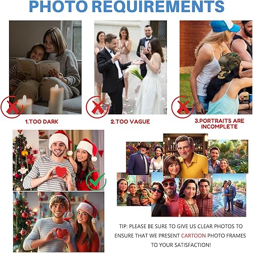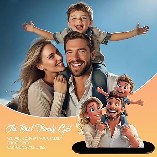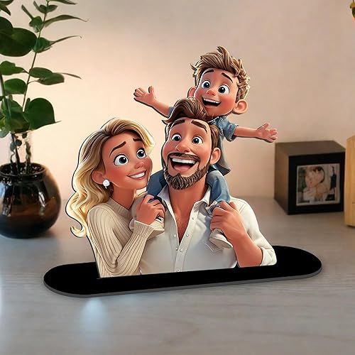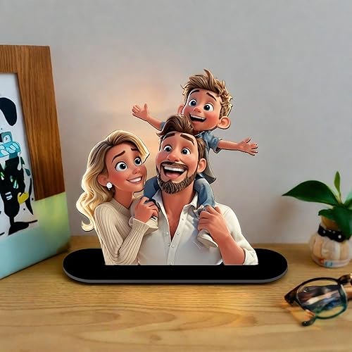 JeathFea Personnalisé 3D Cartoon Style Photo en Bois, Décoration de Bureau Personnalisée Style Caricature, Cadeau pour Papa, Maman, Enfants, Amis, Cadeaux pour Noël la Saint Valentin