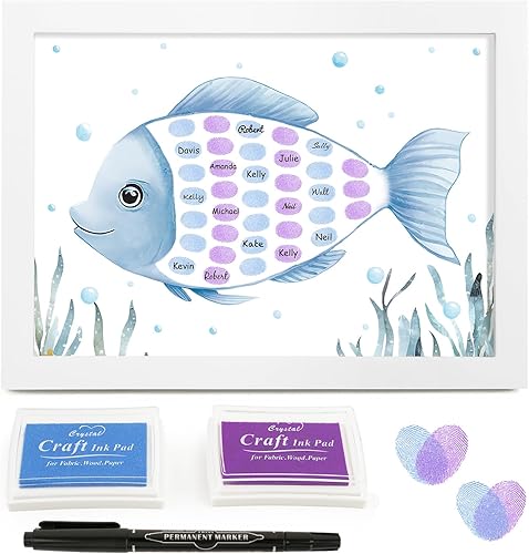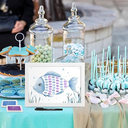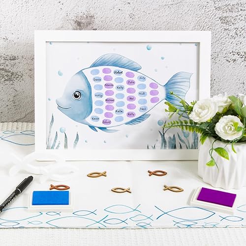 BOFUNX Livre d'or Baptême Empreintes Digitales de Poisson Cadre de Signature pour invité DIY Sign avec Encre pour Anniversaire Baptême