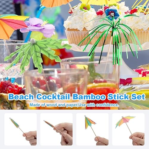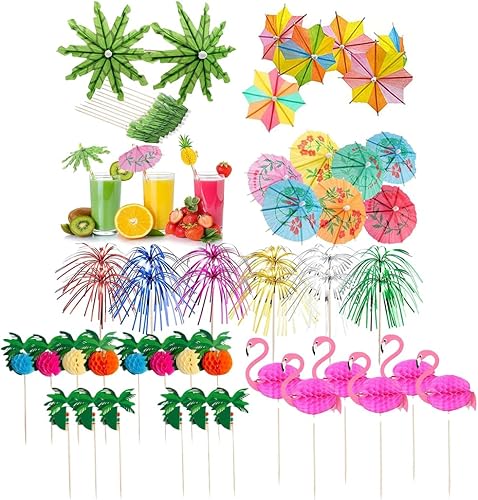 OHREN 60 Pièces Décoration Cocktail Piques à Boisson 3D Flamingo Ananas Papier Palmier Idéal pour Fêtes Anniversaires Bars Cocktails et Plus (Multicolore)