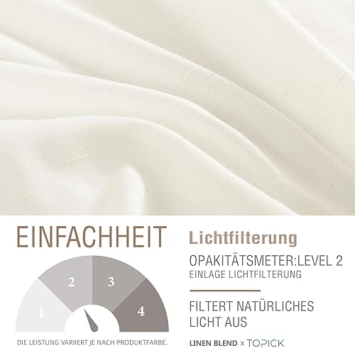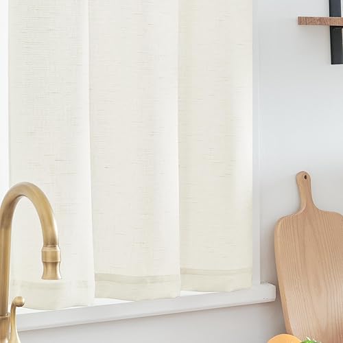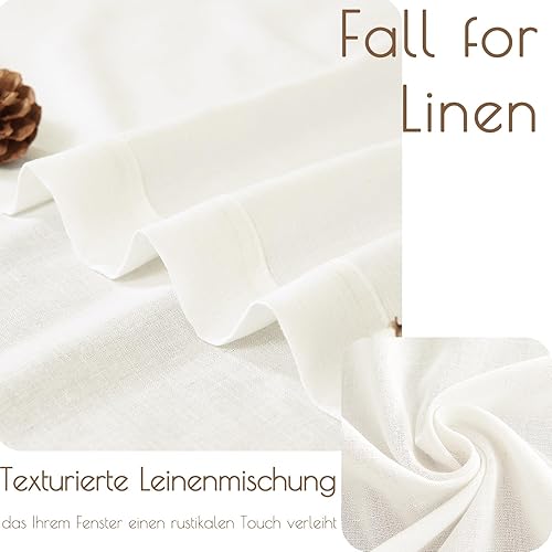 TOPICK Lot de 2 rideaux brise-vue en lin - Semi-transparents - Pour bistrot, cuisine, salon, maison de campagne - 65 x 90 cm (l x H) - Blanc
