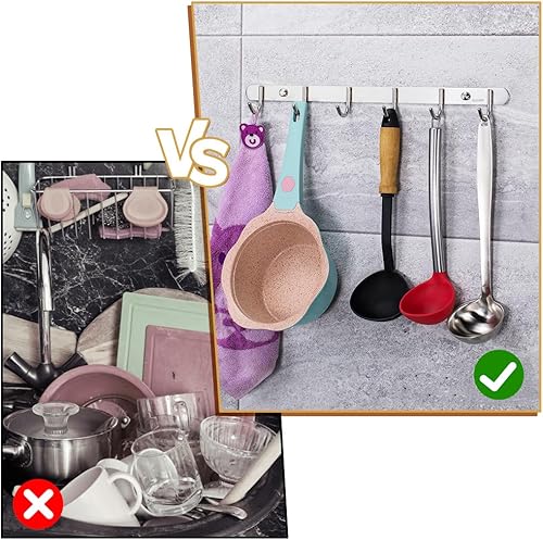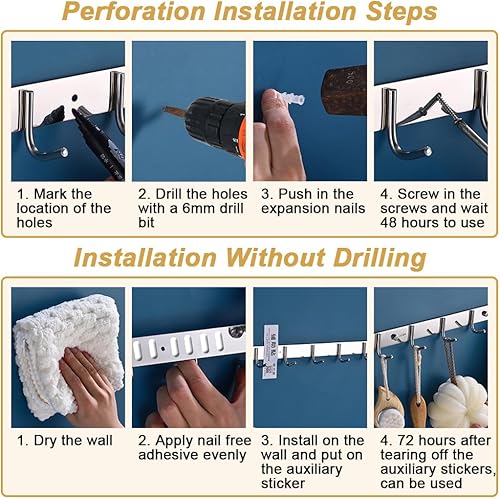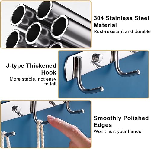 2 Pièces Porte Manteau Mural avec 6 Crochets, 31cm Porte Manteau Acier inoxydable, Multifonctionnels Porte Manteau Mural Patere Murale, pour Cuisine, Salle de Bain et Chambre